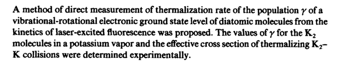 A method of direct measurement of thermalization rate of the population γ of a vibrational-rotational electronic ground state level of diatomic molecules from the kinetics of laser-excited fluorescence was proposed. The values of у for the K2 molecules in a potassium vapor and the effective cross section of thermalizing K2-K collisions were determined experimentally.