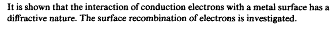 It is shown that the interaction of conduction electrons with a metal surface has a diffractive nature. The surface recombination of electrons is investigated.