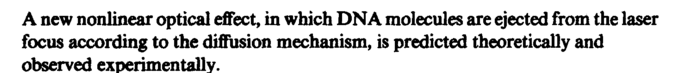 A new nonlinear optical effect, in which DNA molecules are ejected from the laser focus according to the diffusion mechanism, is predicted theoretically and observed experimentally.
