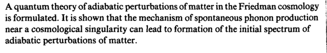 A quantum theory of adiabatic perturbations of matter in the Friedman cosmology is formulated. It is shown that the mechanism of spontaneous phonon production near a cosmological singularity can lead to formation of the initial spectrum of adiabatic perturbations of matter.