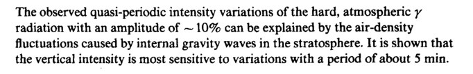 The observed quasi-periodic intensity variations of the hard, atmospheric γ radiation with an amplitude of ~ 10% can be explained by the air-density fluctuations caused by internal gravity waves in the stratosphere. It is shown that the vertical intensity is most sensitive to variations with a period of about 5 min.