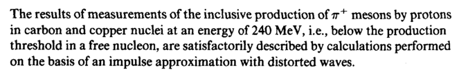 The results of measurements of the inclusive production of π+ mesons by protons in carbon and copper nuclei at an energy of 240 MeV, i.e., below the production threshold in a free nucleon, are satisfactorily described by calculations performed on the basis of an impulse approximation with distorted waves.