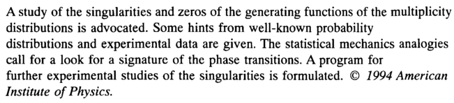 A study of the singularities and zeros of the generating functions of the multiplicity distributions is advocated. Some hints from well-known probability distributions and experimental data are given. The statistical mechanics analogies call for a look for a signature of the phase transitions. A program for further experimental studies of the singularities is formulated. © 1994 American Institute of Physics.