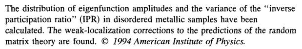 The distribution of eigenfunction amplitudes and the variance of the "inverse participation ratio" (IPR) in disordered metallic samples have been calculated. The weak-localization corrections to the predictions of the random matrix theory are found. © 1994 American Institute of Physics.