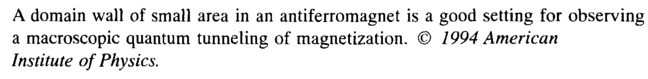 A domain wall of small area in an antiferromagnet is a good setting for observing a macroscopic quantum tunneling of magnetization. © 1994 American Institute of Physics.