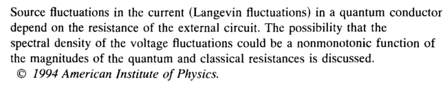 Source fluctuations in the current (Langevin fluctuations) in a quantum conductor depend on the resistance of the external circuit. The possibility that the spectral density of the voltage fluctuations could be a nonmonotonic function of the magnitudes of the quantum and classical resistances is discussed. © 1994 American Institute of Physics.