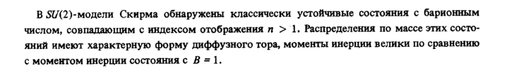 В SU(2)-модели Скирма обнаружены классически устойчивые состояния с барионным числом, совпадающим с индексом отображения η > 1. Распределения по массе этих состояний имеют характерную форму диффузного тора, моменты инерции велики по сравнению с моментом инерции состояния с В = 1.