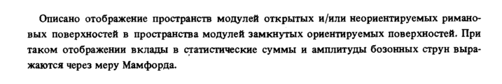 Описано отображение пространств модулей открытых и/или неориентируемых римано-вых поверхностей в пространства модулей замкнутых ориентируемых поверхностей. При таком отображении вклады в статистические суммы и амплитуды бозонных струн выражаются через меру Мамфорда.