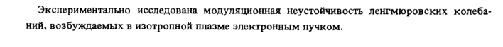 Экспериментально исследована модуляционная неустойчивость ленгмюровских колебаний, возбуждаемых в изотропной плазме электронным пучком.