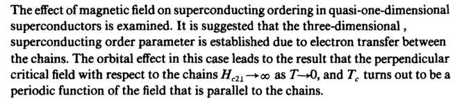 The effect of magnetic field on superconducting ordering in quasi-one-dimensional superconductors is examined. It is suggested that the three-dimensional, superconducting order parameter is established due to electron transfer between the chains. The orbital effect in this case leads to the result that the perpendicular critical field with respect to the chains Нс21—юо as T—>0, and Tc turns out to be a periodic function of the field that is parallel to the chains.