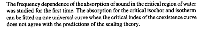 The frequency dependence of the absorption of sound in the critical region of water was studied for the first time. The absorption for the critical isochor and isotherm can be fitted on one universal curve when the critical index of the coexistence curve does not agree with the predictions of the scaling theory.