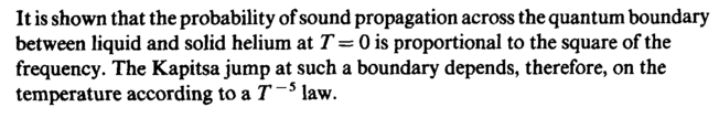 It is shown that the probability of sound propagation across the quantum boundary between liquid and solid helium at Τ = 0 is proportional to the square of the frequency. The Kapitsa jump at such a boundary depends, therefore, on the temperature according to a Τ ~5 law.