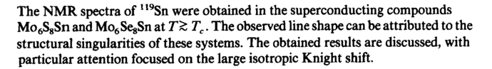 The NMR spectra of U9Sn were obtained in the superconducting compounds Mo6S8Sn and Mo6SegSn at Г£ Tc. The observed line shape can be attributed to the structural singularities of these systems. The obtained results are discussed, with particular attention focused on the large isotropic Knight shift.