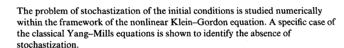 The problem of stochastization of the initial conditions is studied numerically within the framework of the nonlinear Klein-Gordon equation. A specific case of the classical Yang-Mills equations is shown to identify the absence of stochastization.