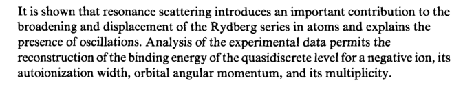 It is shown that resonance scattering introduces an important contribution to the broadening and displacement of the Rydberg series in atoms and explains the presence of oscillations. Analysis of the experimental data permits the reconstruction of the binding energy of the quasidiscrete level for a negative ion, its autoionization width, orbital angular momentum, and its multiplicity.