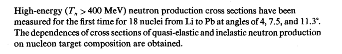 High-energy {Tn > 400 MeV) neutron production cross sections have been measured for the first time for 18 nuclei from Li to Pb at angles of 4, 7.5, and 11.3°. The dependences of cross sections of quasi-elastic and inelastic neutron production on nucleon target composition are obtained.