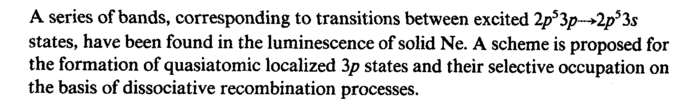 A series of bands, corresponding to transitions between excited 2p53p~^2p52s states, have been found in the luminescence of solid Ne. A scheme is proposed for the formation of quasiatomic localized Ър states and their selective occupation on the basis of dissociative recombination processes.