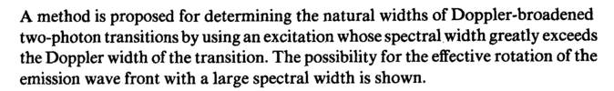 A method is proposed for determining the natural widths of Doppler-broadened two-photon transitions by using an excitation whose spectral width greatly exceeds the Doppler width of the transition. The possibility for the effective rotation of the emission wave front with a large spectral width is shown.