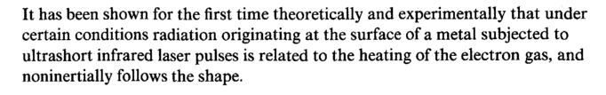 It has been shown for the first time theoretically and experimentally that under certain conditions radiation originating at the surface of a metal subjected to ultrashort infrared laser pulses is related to the heating of the electron gas, and noninertially follows the shape.