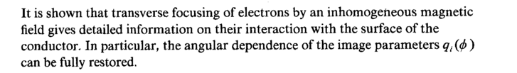 It is shown that transverse focusing of electrons by an inhomogeneous magnetic field gives detailed information on their interaction with the surface of the conductor. In particular, the angular dependence of the image parameters qt {φ ) can be fully restored.