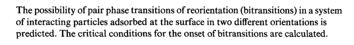 The possibility of pair phase transitions of reorientation (bitransitions) in a system of interacting particles adsorbed at the surface in two different orientations is predicted. The critical conditions for the onset of bitransitions are calculated.