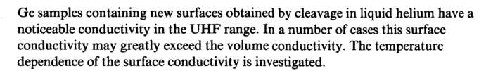Ge samples containing new surfaces obtained by cleavage in liquid helium have a noticeable conductivity in the UHF range. In a number of cases this surface conductivity may greatly exceed the volume conductivity. The temperature dependence of the surface conductivity is investigated.