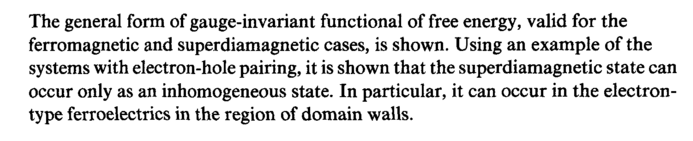 The general form of gauge-invariant functional of free energy, valid for the ferromagnetic and superdiamagnetic cases, is shown. Using an example of the systems with electron-hole pairing, it is shown that the superdiamagnetic state can occur only as an inhomogeneous state. In particular, it can occur in the electron-type ferroelectrics in the region of domain walls.