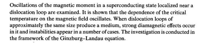 Oscillations of the magnetic moment in a superconducting state localized near a dislocation loop are examined. It is shown that the dependence of the critical temperature on the magnetic field oscillates. When dislocation loops of approximately the same size produce a medium, strong diamagnetic effects occur in it and instabilities appear in a number of cases. The investigation is conducted in the framework of the Ginzburg-Landau equation.