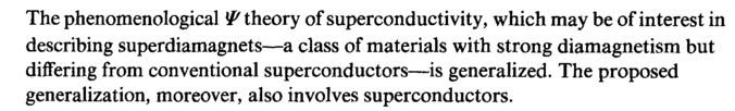 The phenomenological Ψ theory of superconductivity, which may be of interest in describing superdiamagnets—a class of materials with strong diamagnetism but differing from conventional superconductors—is generalized. The proposed generalization, moreover, also involves superconductors.
