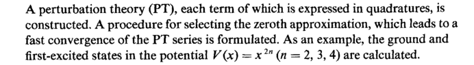 A perturbation theory (PT), each term of which is expressed in quadratures, is constructed. A procedure for selecting the zeroth approximation, which leads to a fast convergence of the PT series is formulated. As an example, the ground and first-excited states in the potential V(x) = x2n (n — 2, 3, 4) are calculated.