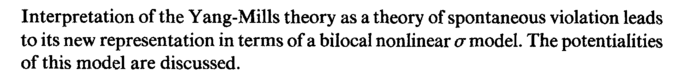Interpretation of the Yang-Mills theory as a theory of spontaneous violation leads to its new representation in terms of a bilocal nonlinear σ model. The potentialities of this model are discussed.