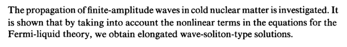 The propagation of finite-amplitude waves in cold nuclear matter is investigated. It is shown that by taking into account the nonlinear terms in the equations for the Fermi-liquid theory, we obtain elongated wave-soliton-type solutions.