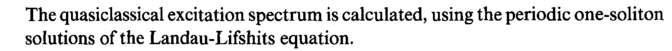 The quasiclassical excitation spectrum is calculated, using the periodic one-soliton solutions of the Landau-Lifshits equation.