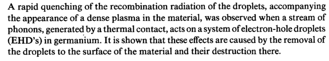 A rapid quenching of the recombination radiation of the droplets, accompanying the appearance of a dense plasma in the material, was observed when a stream of phonons, generated by a thermal contact, acts on a system of electron-hole droplets (EHD's) in germanium. It is shown that these effects are caused by the removal of the droplets to the surface of the material and their destruction there.