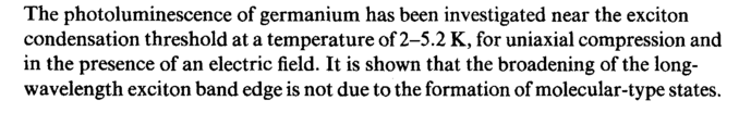The photoluminescence of germanium has been investigated near the exciton condensation threshold at a temperature of 2-5.2 K, for uniaxial compression and in the presence of an electric field. It is shown that the broadening of the long-wavelength exciton band edge is not due to the formation of molecular-type states.