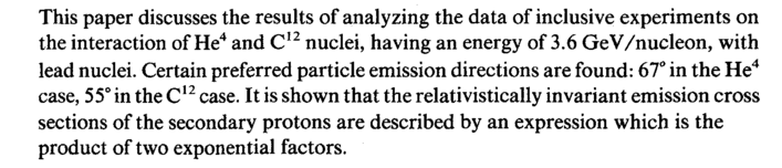 This paper discusses the results of analyzing the data of inclusive experiments on the interaction of He4 and C12 nuclei, having an energy of 3.6 GeV/nucleon, with lead nuclei. Certain preferred particle emission directions are found: 67° in the He4 case, 55° in the C12 case. It is shown that the relativistically invariant emission cross sections of the secondary protons are described by an expression which is the product of two exponential factors.