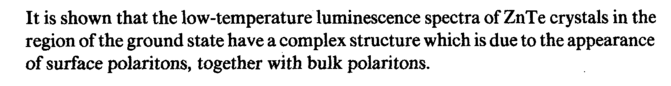 It is shown that the low-temperature luminescence spectra of ZnTe crystals in the region of the ground state have a complex structure which is due to the appearance of surface polaritons, together with bulk polaritons.