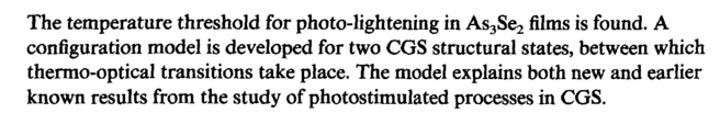 The temperature threshold for photo-lightening in As3Se2 films is found. A configuration model is developed for two CGS structural states, between which thermo-optical transitions take place. The model explains both new and earlier known results from the study of photostimulated processes in CGS.