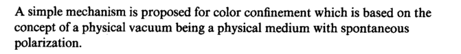 A simple mechanism is proposed for color confinement which is based on the concept of a physical vacuum being a physical medium with spontaneous polarization.