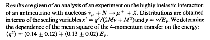 Results are given of an analysis of an experiment on the highly inelastic interaction of an antineutrino with nucleons νμ + N —> μ + + X. Distributions are obtained in terms of the scaling variables x' = q2/(2Mv + Μ 2) and>> ~ v/E^. We determine the dependence of the mean square of the 4-momentum transfer on the energy: (q2) = (0.14 ± 0.12) + (0.13 ± 0.02)