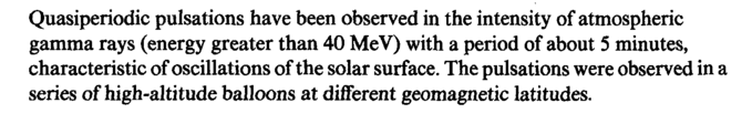 Quasiperiodic pulsations have been observed in the intensity of atmospheric gamma rays (energy greater than 40 MeV) with a period of about 5 minutes, characteristic of oscillations of the solar surface. The pulsations were observed in a series of high-altitude balloons at different geomagnetic latitudes.