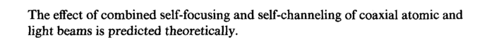 The effect of combined self-focusing and self-channeling of coaxial atomic and light beams is predicted theoretically.