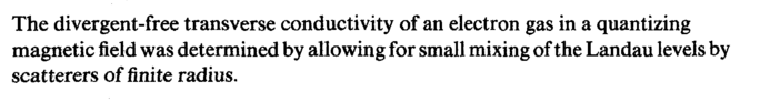 The divergent-free transverse conductivity of an electron gas in a quantizing magnetic field was determined by allowing for small mixing of the Landau levels by scatterers of finite radius.