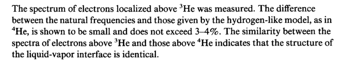 The spectrum of electrons localized above 3He was measured. The difference between the natural frequencies and those given by the hydrogen-like model, as in 4He, is shown to be small and does not exceed 3~A%. The similarity between the spectra of electrons above 3He and those above 4He indicates that the structure of the liquid-vapor interface is identical.