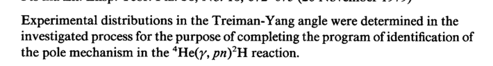 Experimental distributions in the Treiman-Yang angle were determined in the investigated process for the purpose of completing the program of identification of the pole mechanism in the 4Не(/, pn)2H reaction.