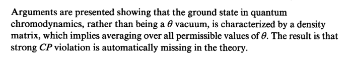 Arguments are presented showing that the ground state in quantum chromodynamics, rather than being a θ vacuum, is characterized by a density matrix, which implies averaging over all permissible values of Θ. The result is that strong CP violation is automatically missing in the theory.