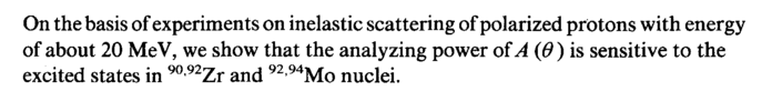 On the basis of experiments on inelastic scattering of polarized protons with energy of about 20 MeV, we show that the analyzing power of Α (Θ ) is sensitive to the excited states in 90,92Zr and 92,94Mo nuclei.