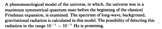 A phenomenological model of the universe, in which, the universe was in a maximum symmetrical quantum state before the beginning of the classical Friedman expansion, is examined. The spectrum of long-wave, background, gravitational radiation is calculated in this model. The possibility of detecting this radiation in the range 10 ~3 — 10 ~5 Hz is promising.