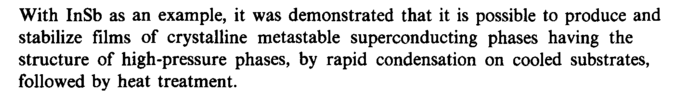 With InSb as an example, it was demonstrated that it is possible to produce and stabilize films of crystalline metastable superconducting phases having the structure of high-pressure phases, by rapid condensation on cooled substrates, followed by heat treatment.