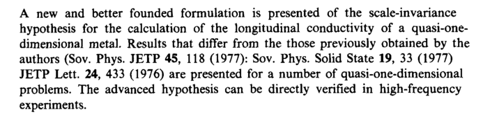 A new and better founded formulation is presented of the scale-invariance hypothesis for the calculation of the longitudinal conductivity of a quasi-one-dimensional metal. Results that differ from the those previously obtained by the authors (Sov. Phys. JETP 45, 118 (1977): Sov. Phys. Solid State 19, 33 (1977) JETP Lett. 24, 433 (1976) are presented for a number of quasi-one-dimensional problems. The advanced hypothesis can be directly verified in high-frequency experiments.